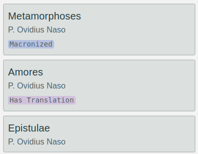 The list of works has been slightly revamped in appearance and now shows which works have translations and which are macronized.